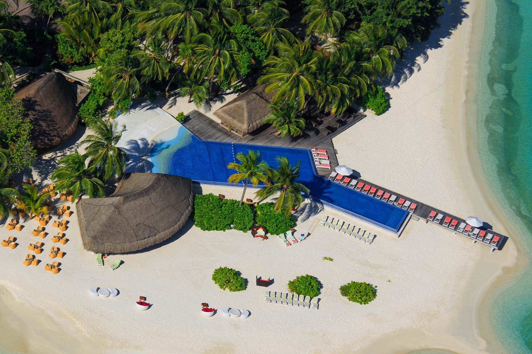 裙摆似的拖尾沙滩酒店,拥有长达4 公里的海滩,它是马尔代夫最长的海滩之一。也是马尔代夫最有趣的酒店。