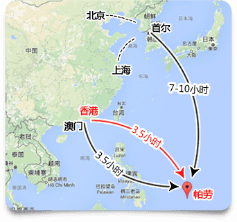 太平洋、狮子航空、韩亚航空推出香港、澳门及首尔直飞包机,最短航程仅3.5h。