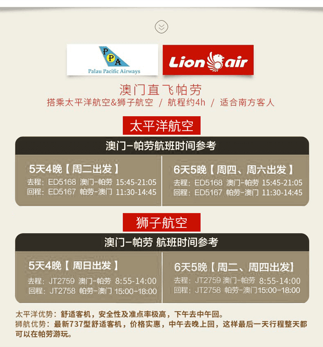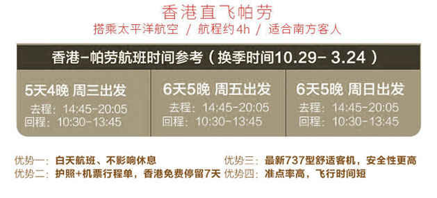 太平洋航空为帕劳当地注册的航空公司,执行航班为最新播音737-800型航班,总计189个座位,航班从香港飞往帕劳。执行航班是向欧盟国家斯洛伐克,探索航空承租的飞机,机师飞行员全部来自欧盟国家,严格执行欧盟航空安全标准。最最重要的是准点率98%,取消率为0。