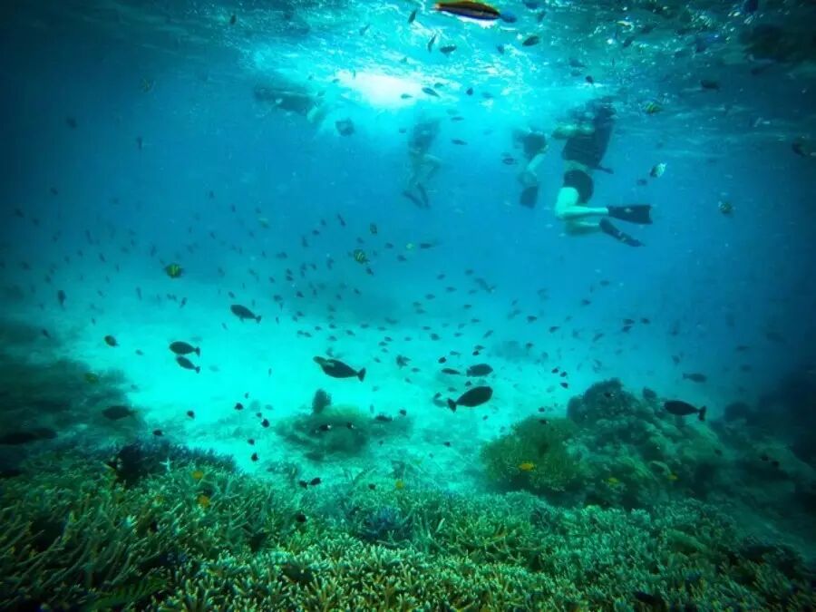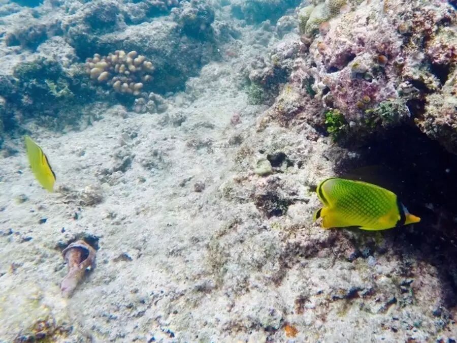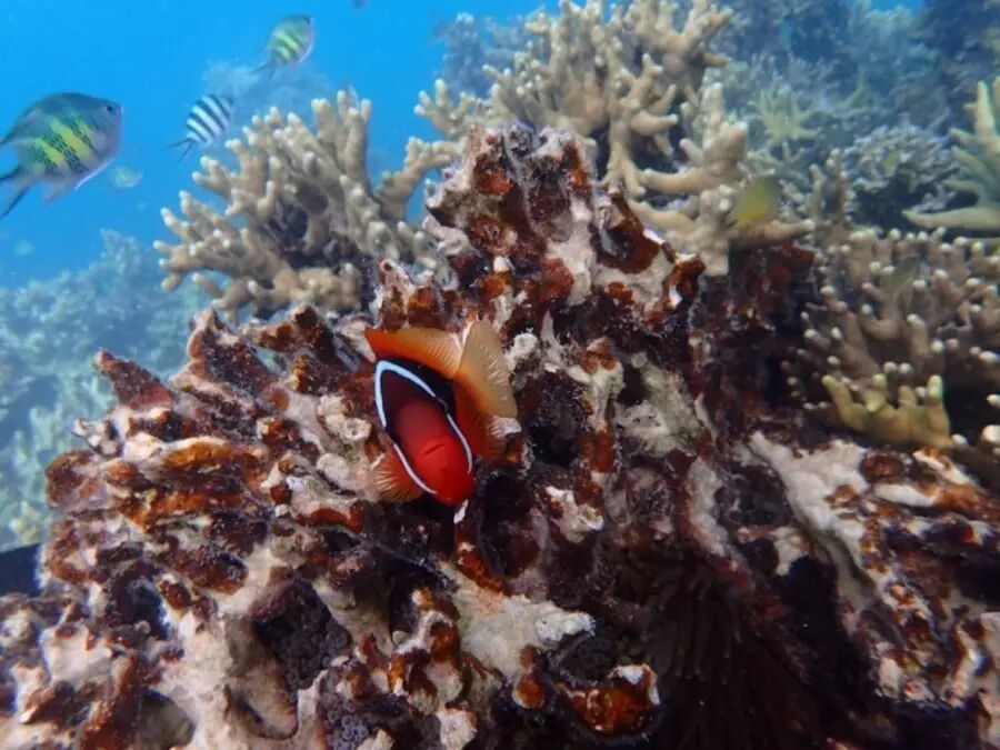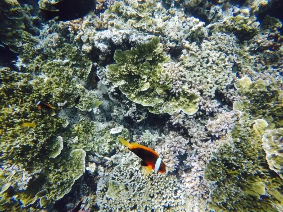在沉船的梦里还没醒过来,即前往第二个潜点,玫瑰珊瑚花园,我更喜欢这里的鱼,浮潜区域很浅,鱼群完全不怕人,运气好还能看到羞涩的苏眉鱼,或者找一下尼莫(小丑鱼)。