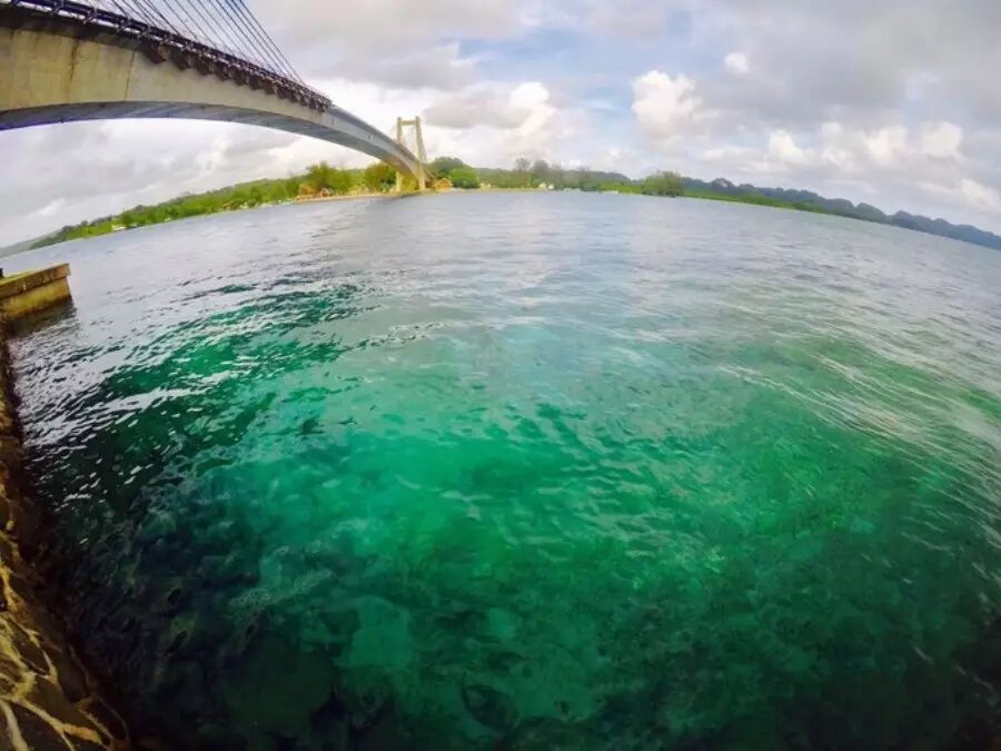 一觉起来疲惫缓解不少,12点来向导阿洛接车,然后解决午饭和环大岛游。午餐的码头风光不错,慢慢感觉到帕劳的海,每一片都有它不一样的美。 饭毕,空调大巴带我们去了小白宫(帕劳总统府)、KB大桥两个点随意参观,而我更享受在大巴上听向导阿骆讲解帕劳的各种趣事见闻和看窗外的风景——树丛不高,没有违和感的大小广告牌,没有隐隐若现的山中豪宅别墅,甚至都没有耸起的高压电线,路上还不时有小野鸡到处乱跑,真是独特。