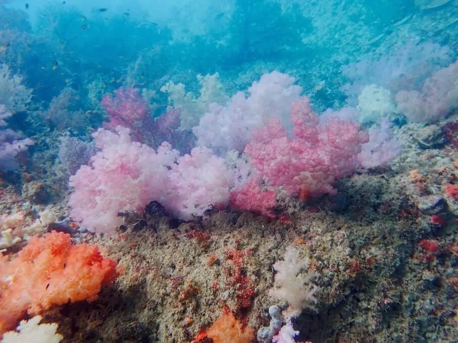 七彩软珊瑚是第三个景点,想要看到美丽的软珊瑚就要通过不大不小的洞口,然后潜下去,如果光线允许真的可以看到五颜六色的珊瑚,但是千万不要尝试触摸这些美丽的珊瑚,大部分都含有毒性。可惜我们当天海上天气不好,洋流很短,软珊瑚水域能见度已经很低,即使潜下去也能看到的不多了。