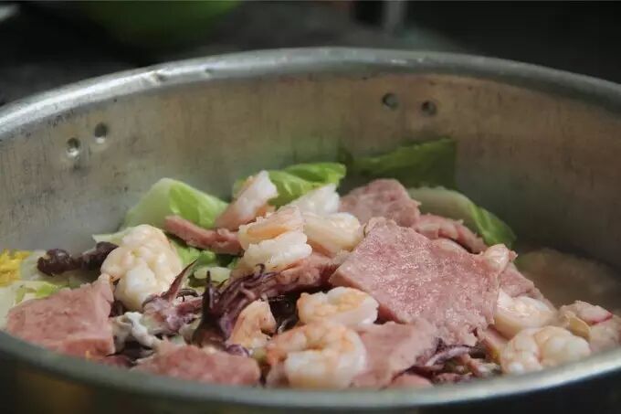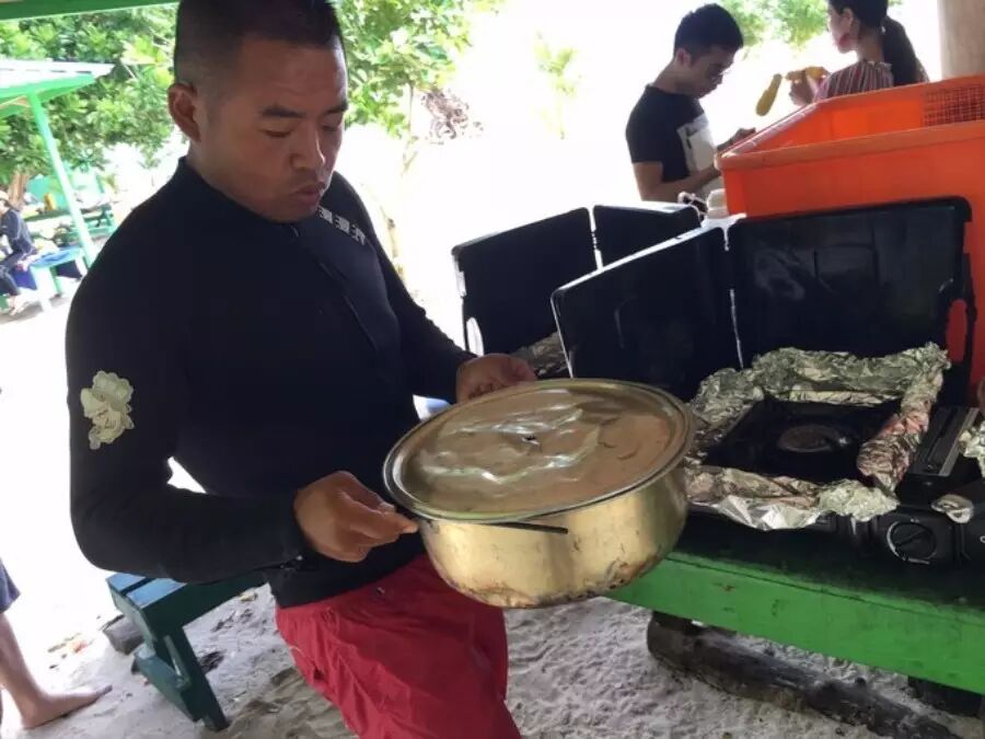 他在无人岛上做的超棒午餐,美味海鲜锅,爱游小隋团真的非常贴心,海鲜杂烩火锅会有两锅,辣和不辣的。口味不错,下饭,而且超多龙虾,大白菜,培根还有鱿鱼。另外还配了现烤的海鱼2-4条,会吃撑。每天出海的午餐主题都不一样,真的很想每天都和他们出海。