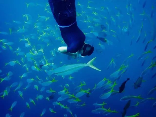 ▍大断层可以说是整个浮潜行程的精华。当震撼的海下奇观,一面是峭壁五颜六色的珊瑚,另外是深不见底的深渊,同时作为世界潜水圣地,在这里可以看到丰富种类的鱼群。无论你是否有证,在大断层可以做的就是浮潜和体验潜水,如果有证,就可以享受潜水。