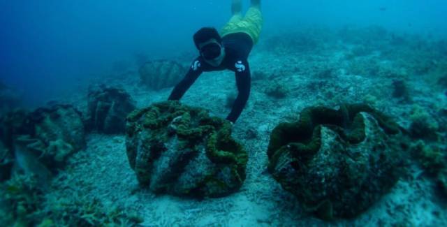 ▍百年干贝城是帕劳特地保留的保护区域,全世界最大的贝壳就在这里,整个浮潜区约有上百颗巨型干贝,相当的壮观。但它们都是活的,千万不要因为好奇去触碰,否则会有被夹住的危险。
